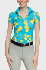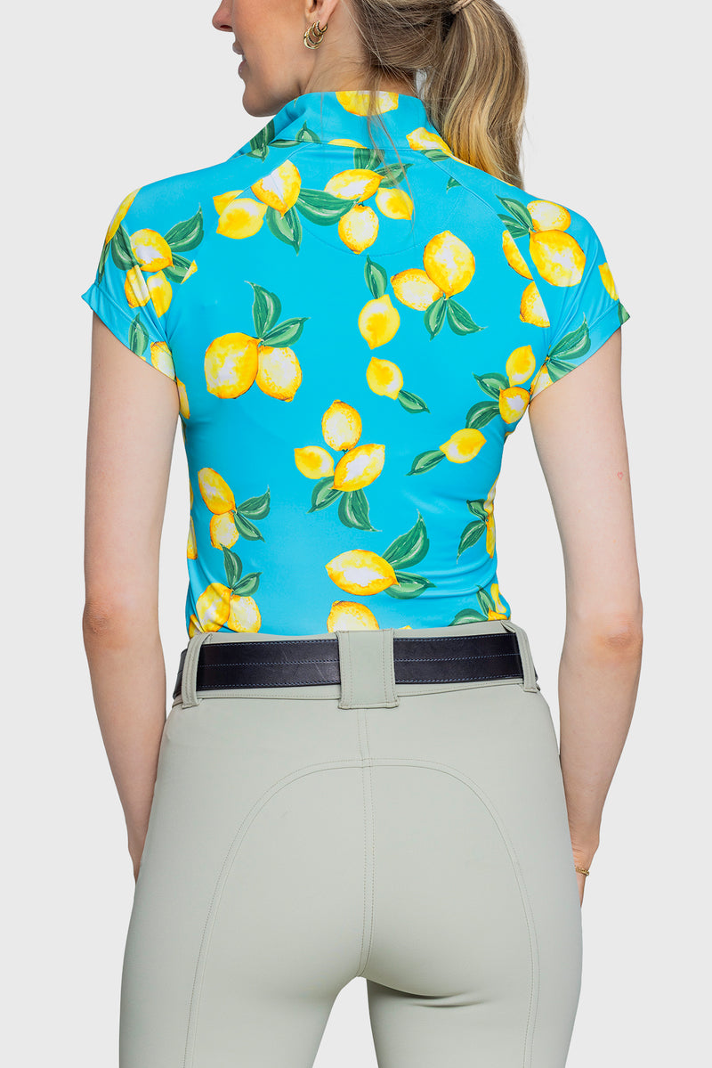 Limoncello and the mediterranean inspired our classic lemon print. This season rich azure blue pairs with the lovely lemons. La dolce vita awaits! UPF 30, ¼ zip, soft 4-way stretch fabric in a contemporary fit.